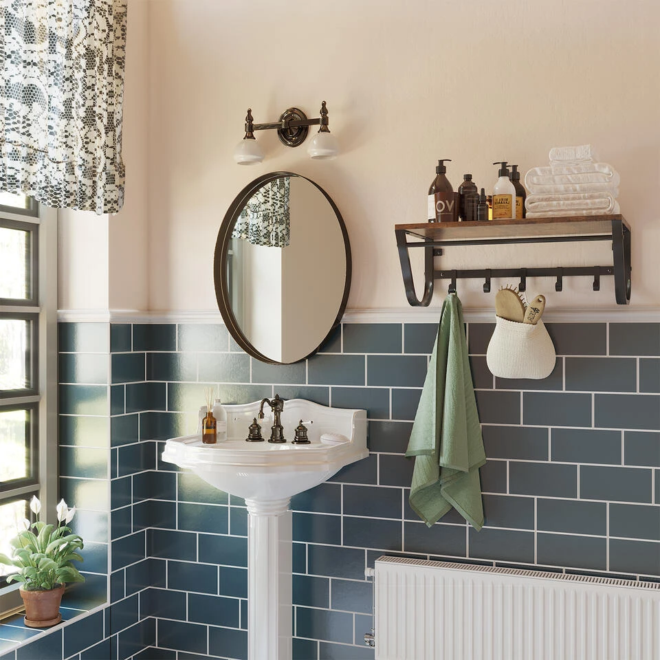 Deze kapstok combineert verschillende ophang- en opbergmogelijkheden met een plank, een rail en meerdere haken. De kapstok neemt weinig ruimte in beslag, maar is toch zeer praktisch. De kapstok heeft een leuke vintage toets waardoor ze een echte eyecatcher zal zijn in uw hal, badkamer of woonkamer.