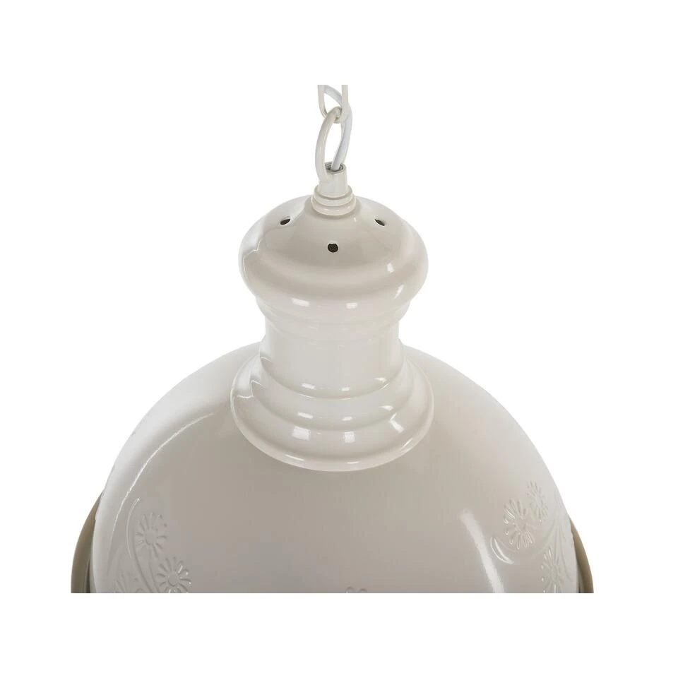 Hanglamp cremewit in industriële stijl . Deze hanglamp met zijn retro-vorm, past naadloos in een modern, minimalistisch of industrieel interieur. De klokvormige kap is gemaakt van robuust en sterk metaal en heeft een delicaat bloemmotief waardoor hij in elke omgeving opvalt. De lamp wordt compleet gemaakt met een decoratieve plafondbevestiging en een kettingophanging. Deze retro-geïnspireerde aspecten voegen toe aan de algehele aantrekkingskracht van de lamp.