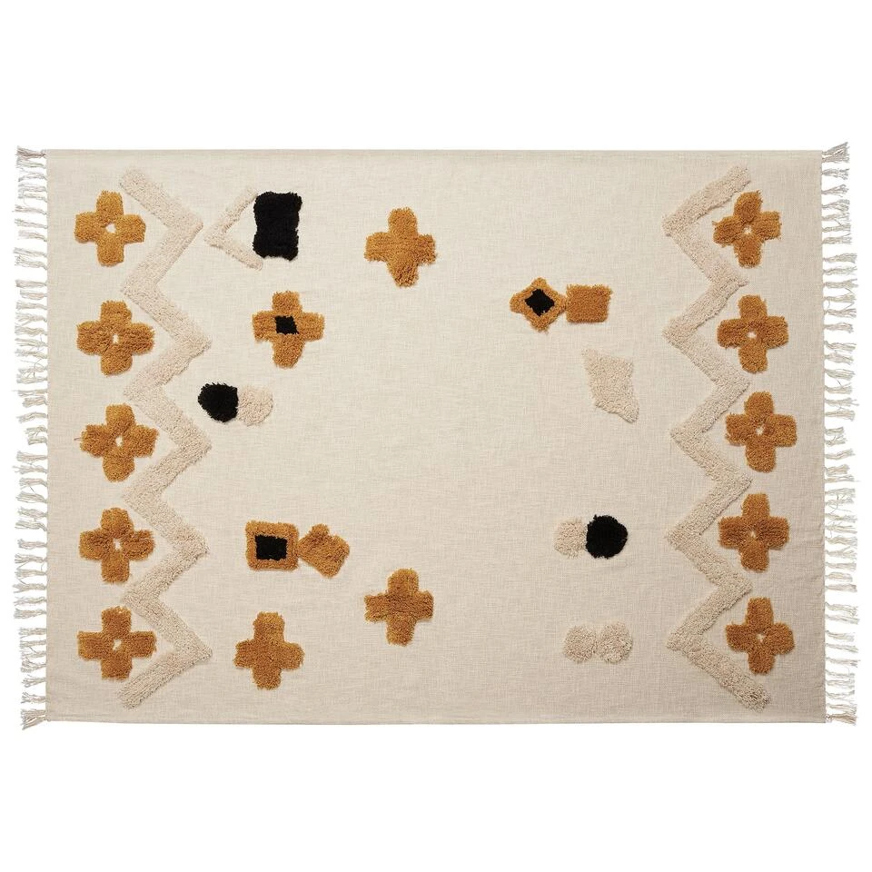 Deken met Handgewoven Patroon. Dit deken heeft een prachtig abstract patroon waardoor hij zorgt voor een gedurfde look op je bed of op de bank, voor elk interieur. Het deken is handgemaakt van natuurlijk katoen waardoor hij zorgt voor extra warmte bij je favoriete relax plek. Met decoratieve franjes en aan beide kanten een bloemachtig patroon, voor een vintage stijl.