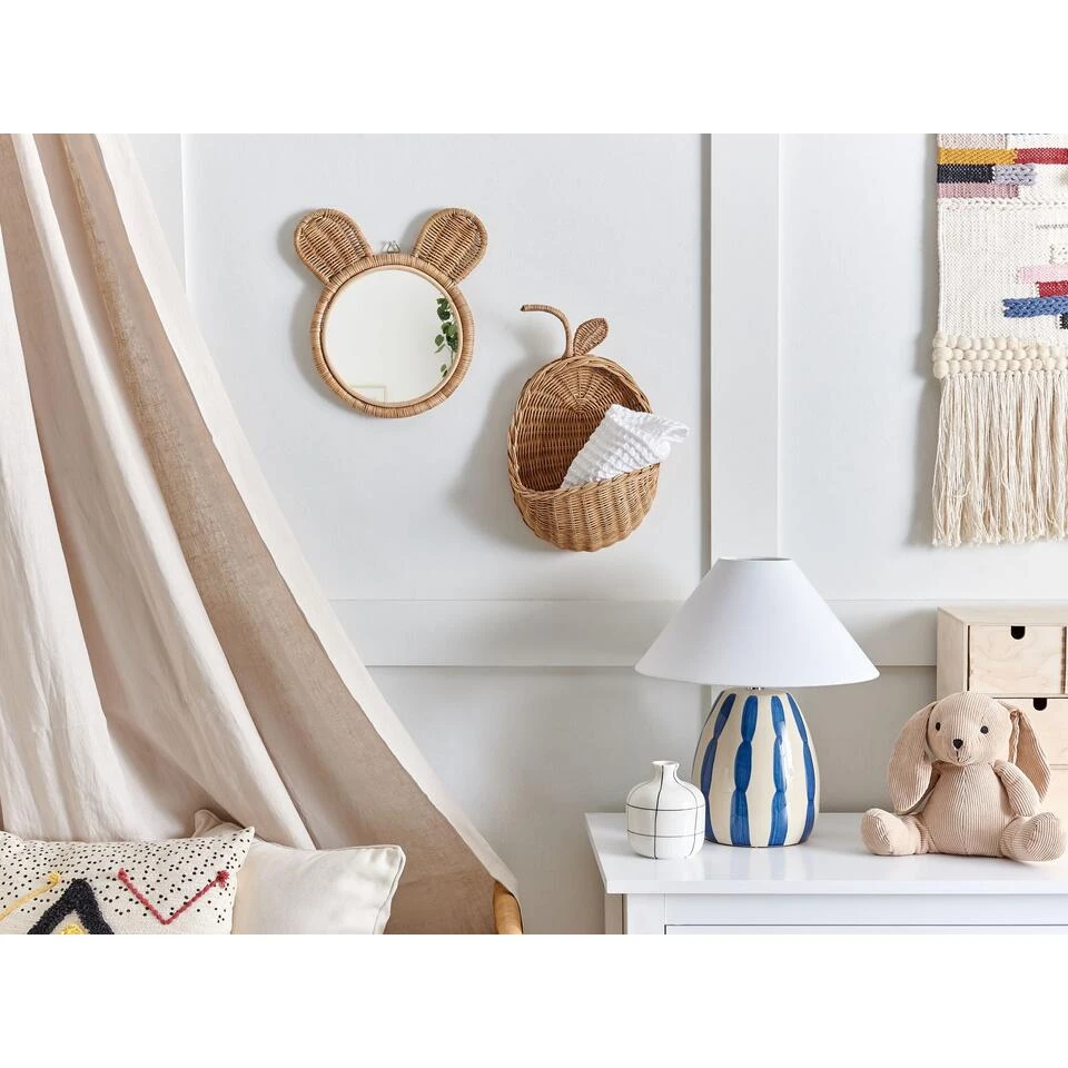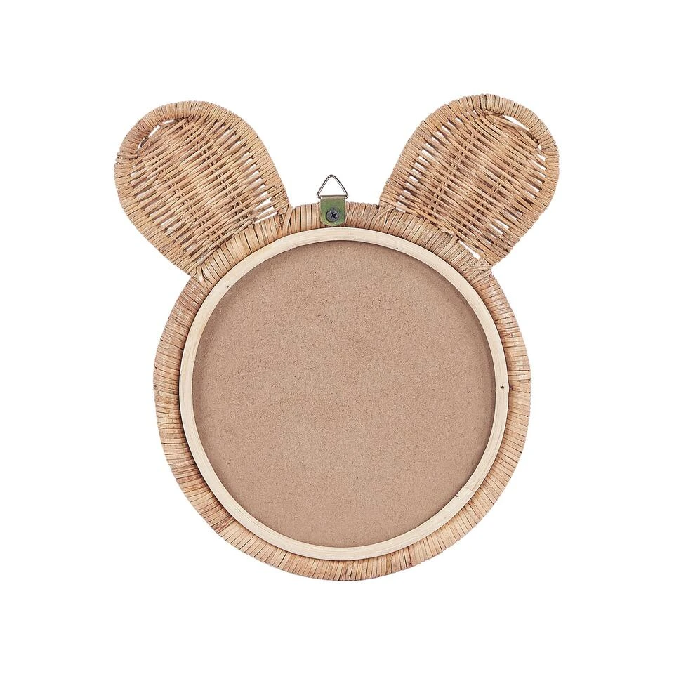 Decoratieve spiegel met beren oren. Ben je op zoek naar een spiegel waar je kinderen gek op zullen zijn, dan is deze een must-have. Door zijn schattige berenoren zullen je kinderen elke keer lachen als ze naar zichzelf kijken in de spiegel. Het handgeweven frame is gemaakt van natuurlijk rotan en heeft een haakje om gemakkelijk op te hangen.