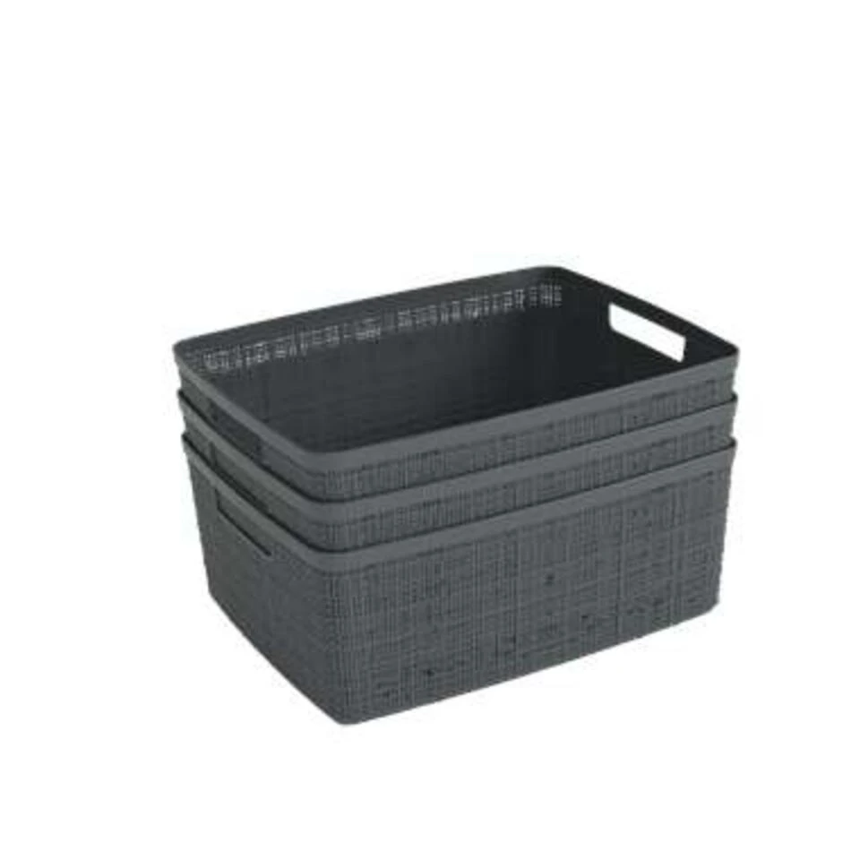 - Curver Jute Mand M – 12L – 3 stuks – Donkergrijs