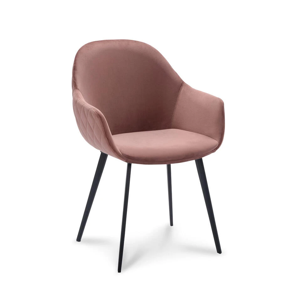 Eetkamerstoel Rouen met armleuningen is bekleed met een hippe, trendy velours/velvet stof in de kleur oudroze. De stoel is uitgevoerd met donkere, strakke, uiteenlopende en rechthoekige poten. De kuip is aan de buitenzijde voorzien van diamant-stiksels. Dat geeft de stoel een bijzonder uiterlijk! Rouen in een andere kleur bestellen? Dat kan! Deze eetkamerstoel is verkrijgbaar in meerdere velvet/velours kleuren.