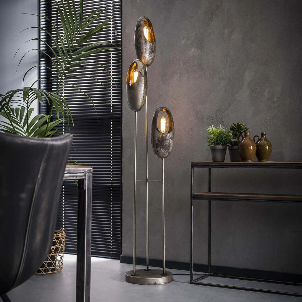 Giga Meubel Vloerlamp 3-Lichts – Getrapt – Oud Zilver – Lamp Open Oog