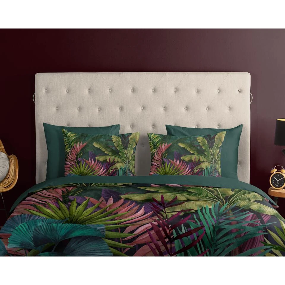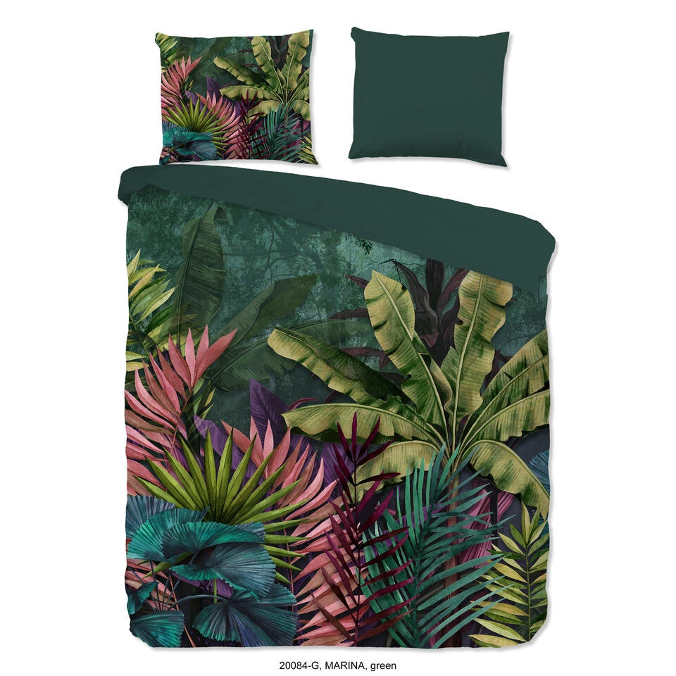 Dekbedovertrek “Marina” van Good Morning met jungle print, in de kleur “Groen” is gemaakt van 100% Cotton. Deze kwaliteit is ademend, vocht absorberend en voelt zacht en soepel aan.