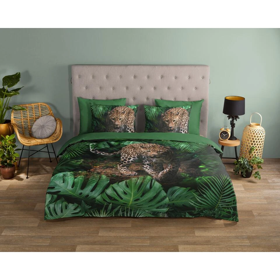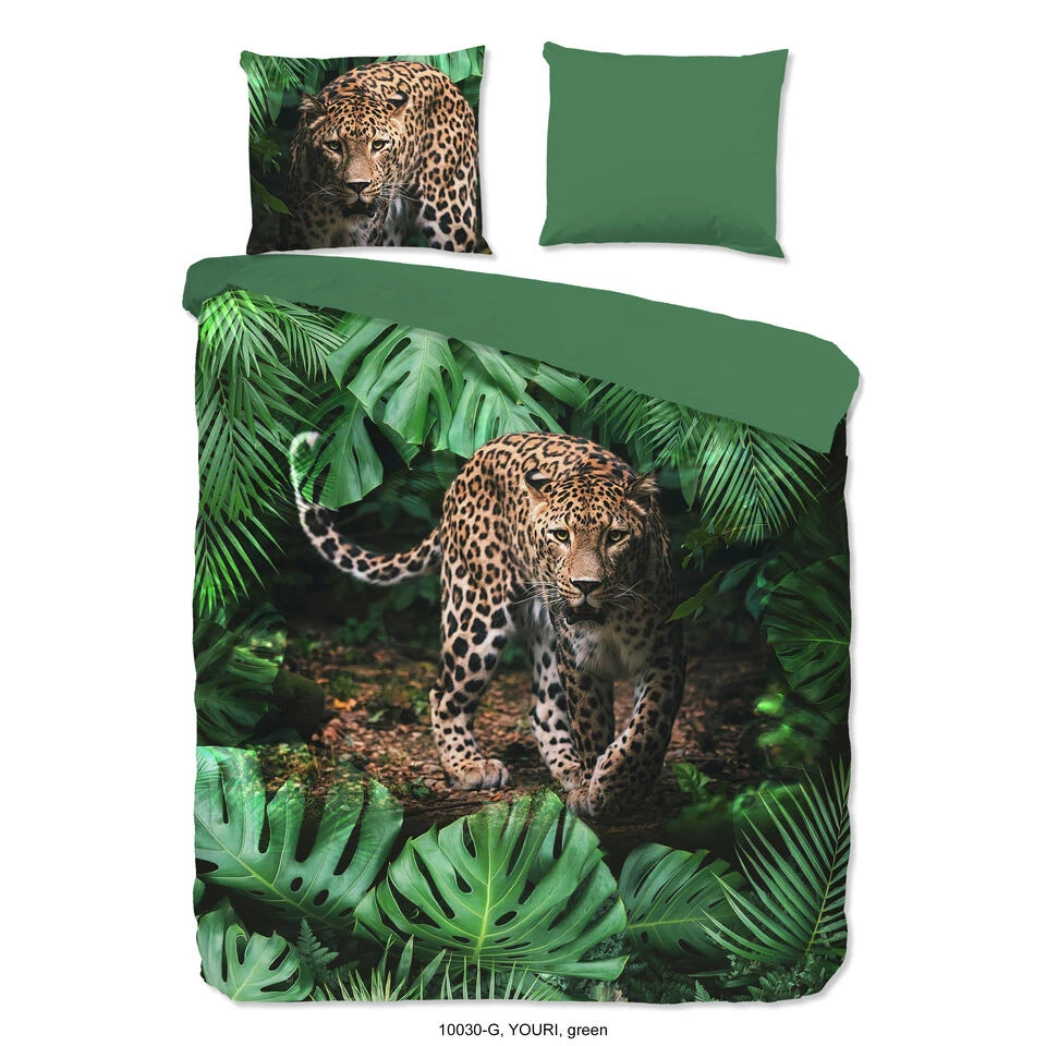 Dekbedovertrek “Youri” van Good Morning met luipaard, in de kleur “Groen” is gemaakt van 100% Cotton. Deze kwaliteit is ademend, vocht absorberend en voelt zacht en soepel aan.