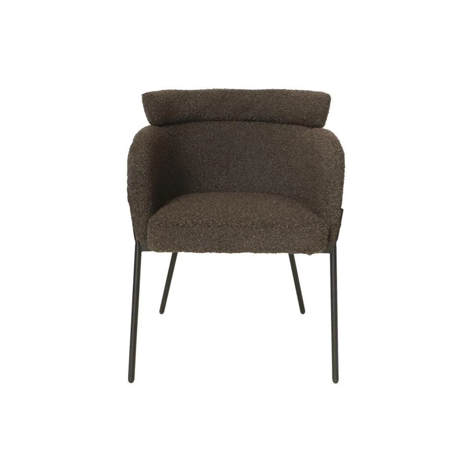 De elegante eetkamerstoel Luca van HSM Collection heeft een fantastisch, trendy ontwerp dat in elke kamer opvalt. Het zwarte onderstel is gemaakt van stevig metaal. De stoel is bekleed met een stevige teddy stof van 96% polyester en 4% PCU. De combinatie van de zachte stof en de stoere metalen poten is dé trend van nu. De stof heeft naast een prachtige uistraling, ook vrij stevig stof met een martindale van 70.000. De stof word ook wel boucle’genoemd. Een luxe gebreide stof met als eigenschappen zacht, warm en een onregelmatig oppervlakte met lussen en krulletjes. Zithoogte: 49cm Zitbreedte: 49cm Zitdiepte: 45cm Rugleuning vanaf zit: 38 cm hoog Rugleuning vanaf grond: 81 cm hoog Armleuning: 23 cm hoog