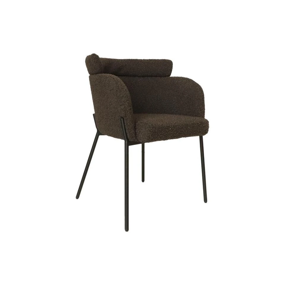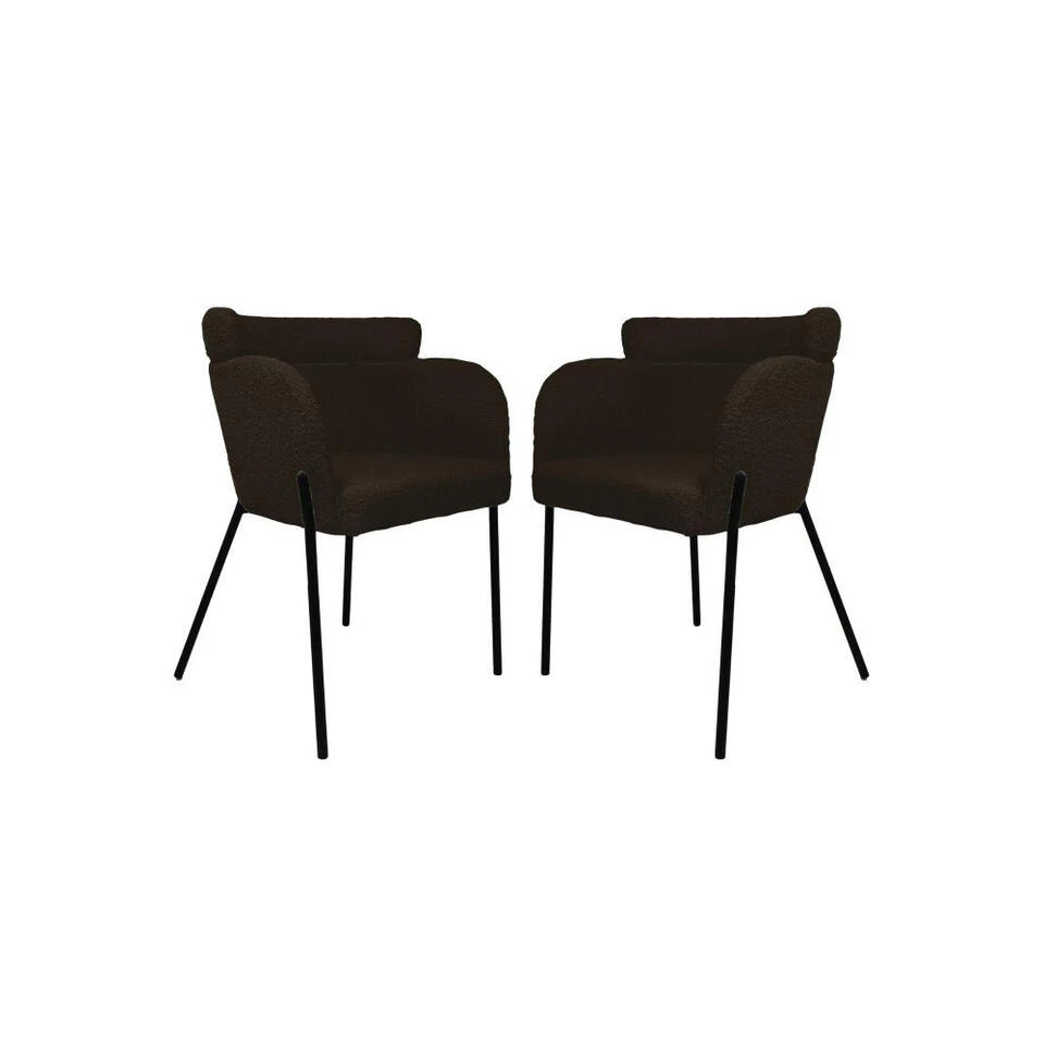 HSM Collection Eetkamerstoel Luca Set Van 2 Espresso/Zwart Teddy/Bouclé/Metaal