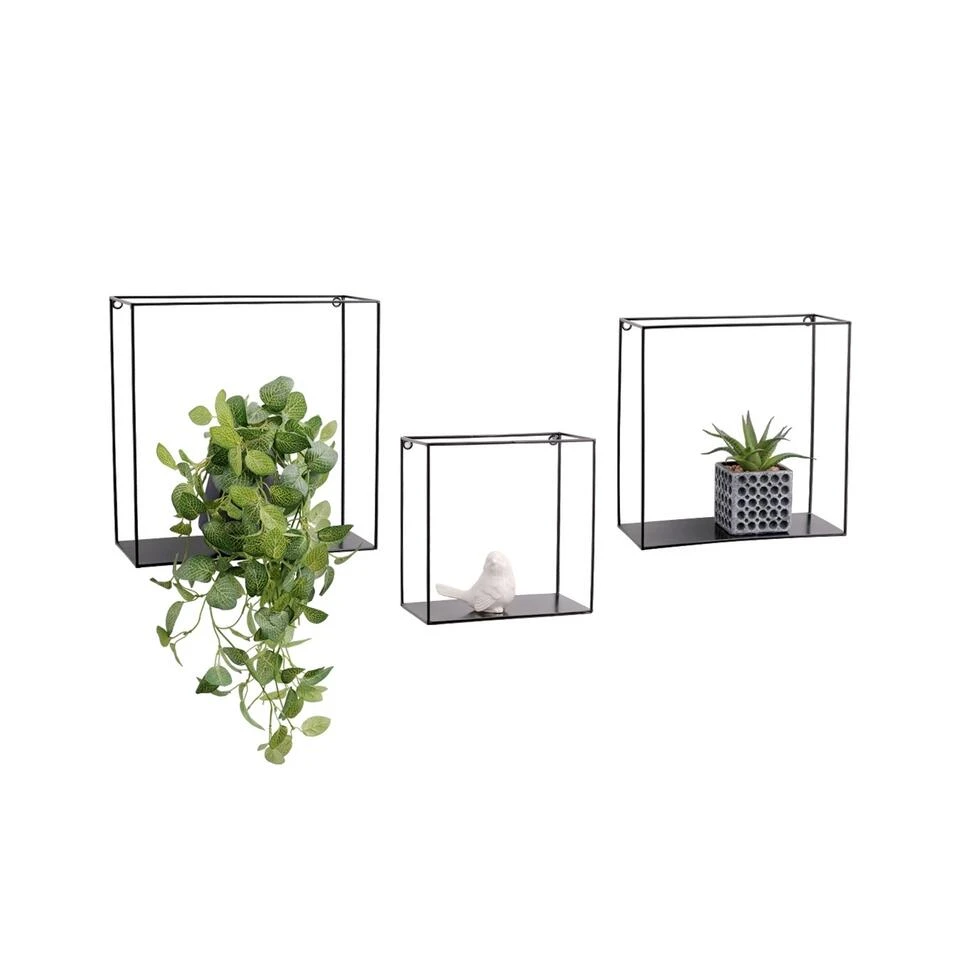 Gerona is een set van 3 wandplanken die een elegante touch aan uw woonkamer toevoegen. Onze zwart geschilderde metalen planken zijn ideaal voor uw foto’s, gadgets, plantenpotten, boeken en nog veel meer.