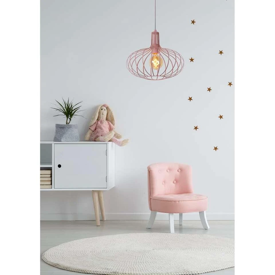 Geef de mooie prinsessenkamer van je dochter een hippe, Scandinavische toets met Merlina. De zachtroze kleur van deze hanglamp verzacht het gebruikte metaal. De vorm van de lamp drapeert zich mooi rond de lichtbron met zijn warm, wit licht. Je monteert deze lamp makkelijk aan het plafond en stelt ze via het snoer af op de gewenste hoogte. Zo past de luster in elke ruimte. P.S: in een eetkamer of woonkamer in Scandinavische stijl kan Merlina ook een leuke eyecatcher zijn.