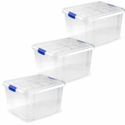 Curver Handy+ Opbergbox – 50L – 3 Stuks – Transparant Met Deksel
