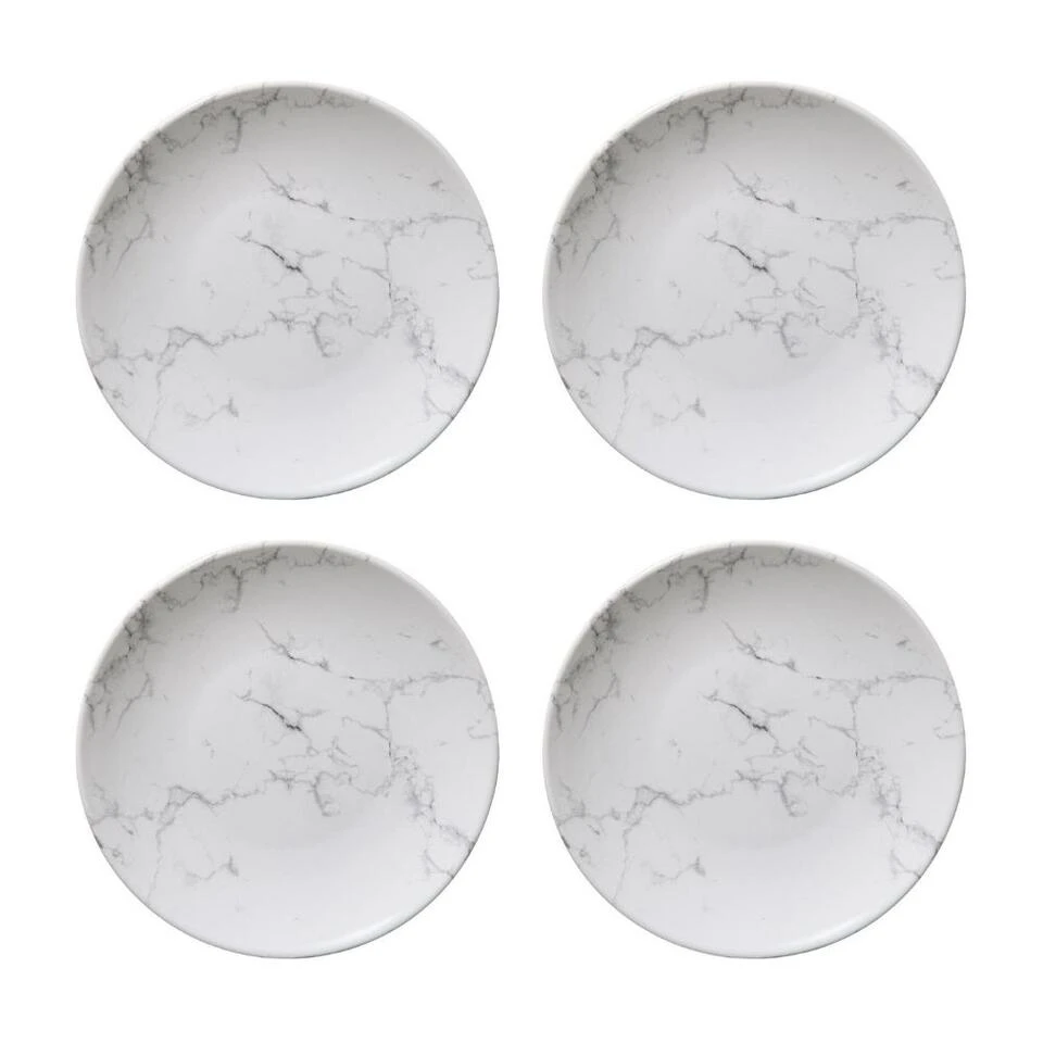 Deze Orange85 gebaksbordjes wit zijn perfect voor het serveren van gebak en andere lekkernijen. Door de witte marmer look hebben de bordjes een chique uitstraling. De borden worden verkocht per vier stuks en zijn gemaakt van aardewerk. De diameter van de borden is 19 cm. Eventueel zijn de bordjes ook te gebruiken als kleine ontbijtborden.