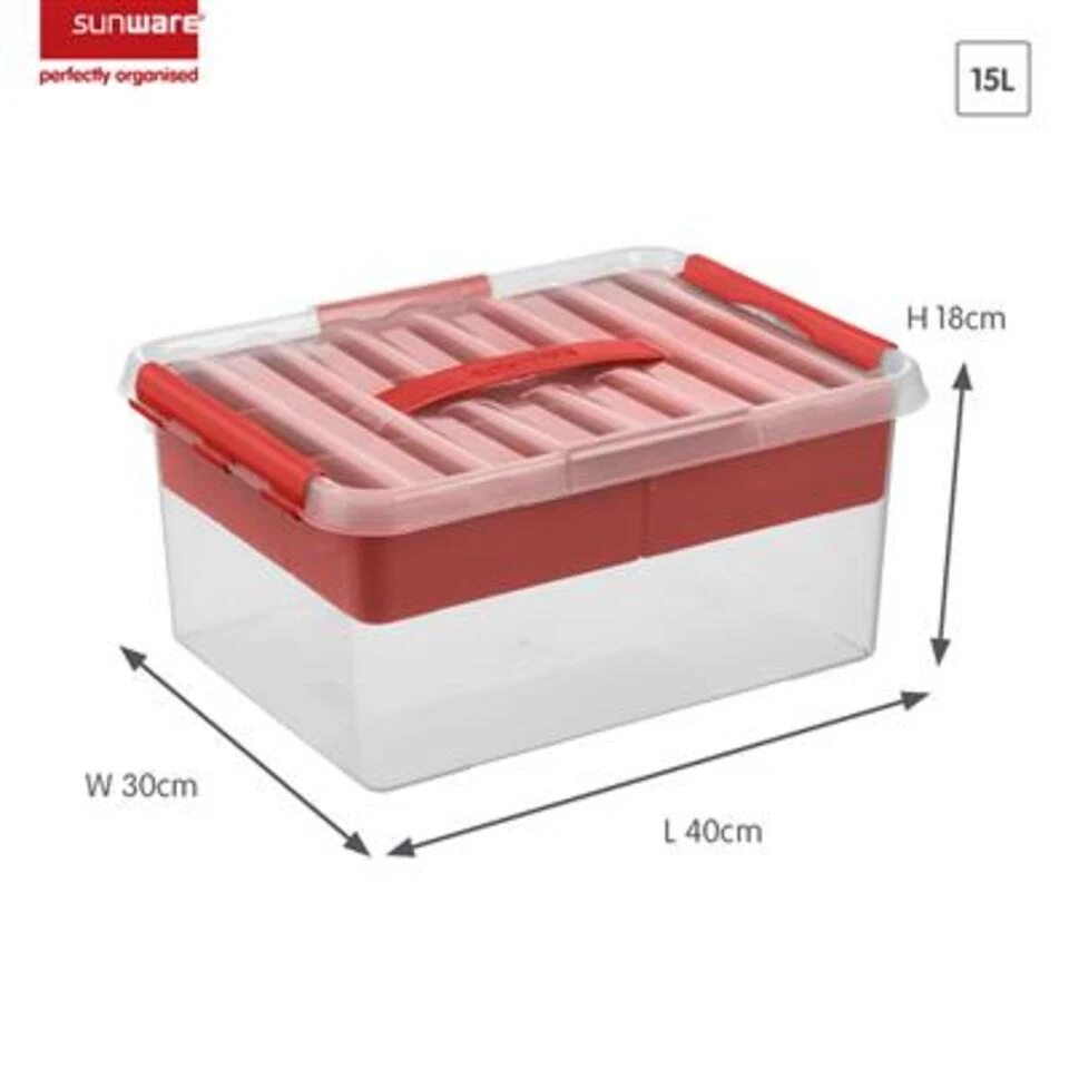 De Q-line 15L opbergbox van Sunware is een praktische en multifunctionele alleskunner! Deze box van Sunware wordt standaard geleverd met een handige inzet met vakverdeling. Hierdoor kun je kleinere spullen & accessoires opbergen met je bijbehorende grotere voorwerpen. Zo houd je setjes en spullen bestaande uit meerdere onderdelen netjes bij elkaar.