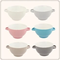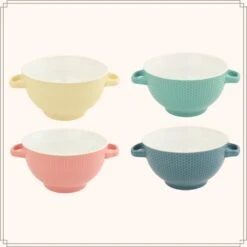 OTIX Soepkommen Met Oor Set Van 4 Verschillende Kleuren Aardewerk 680 Ml