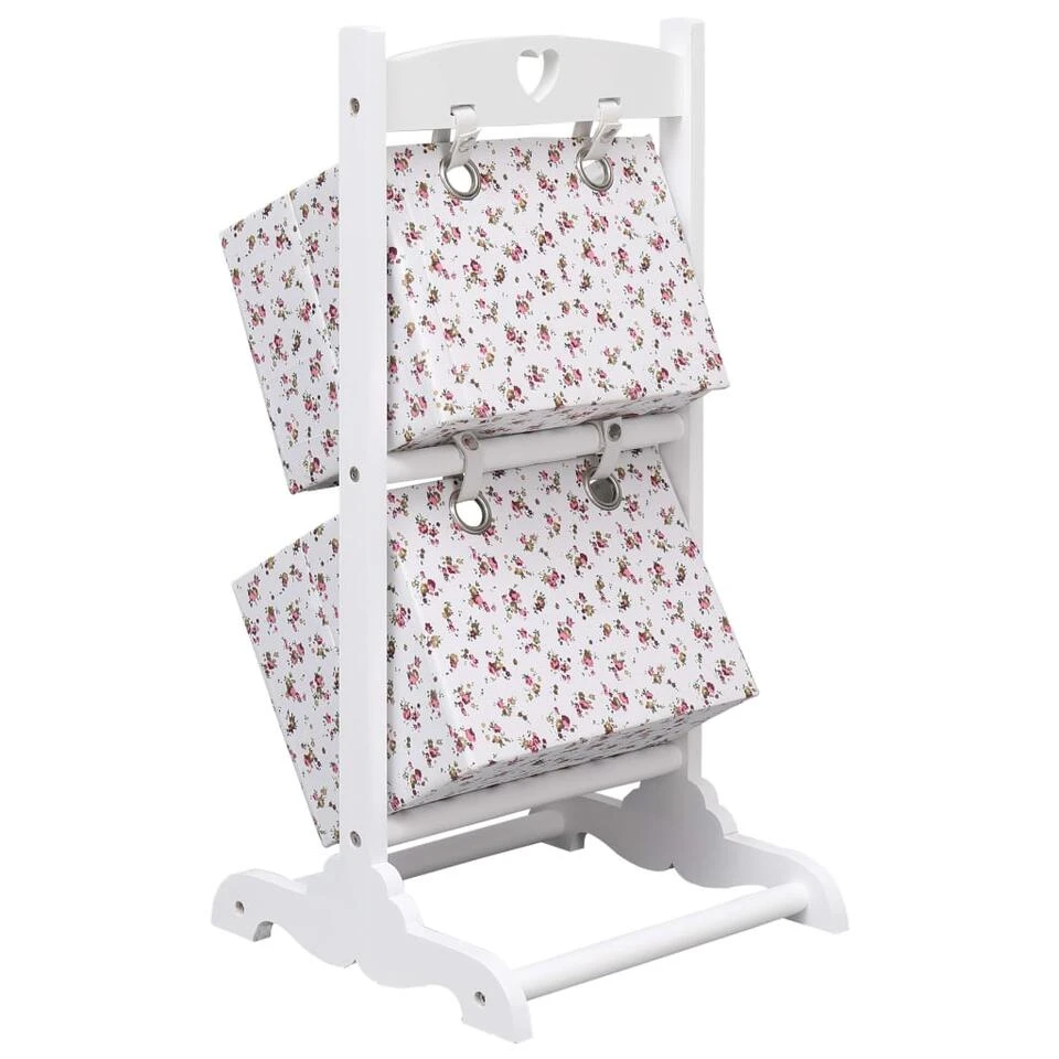 - Kleur: wit frame en mand en stof met bloemenpatroon