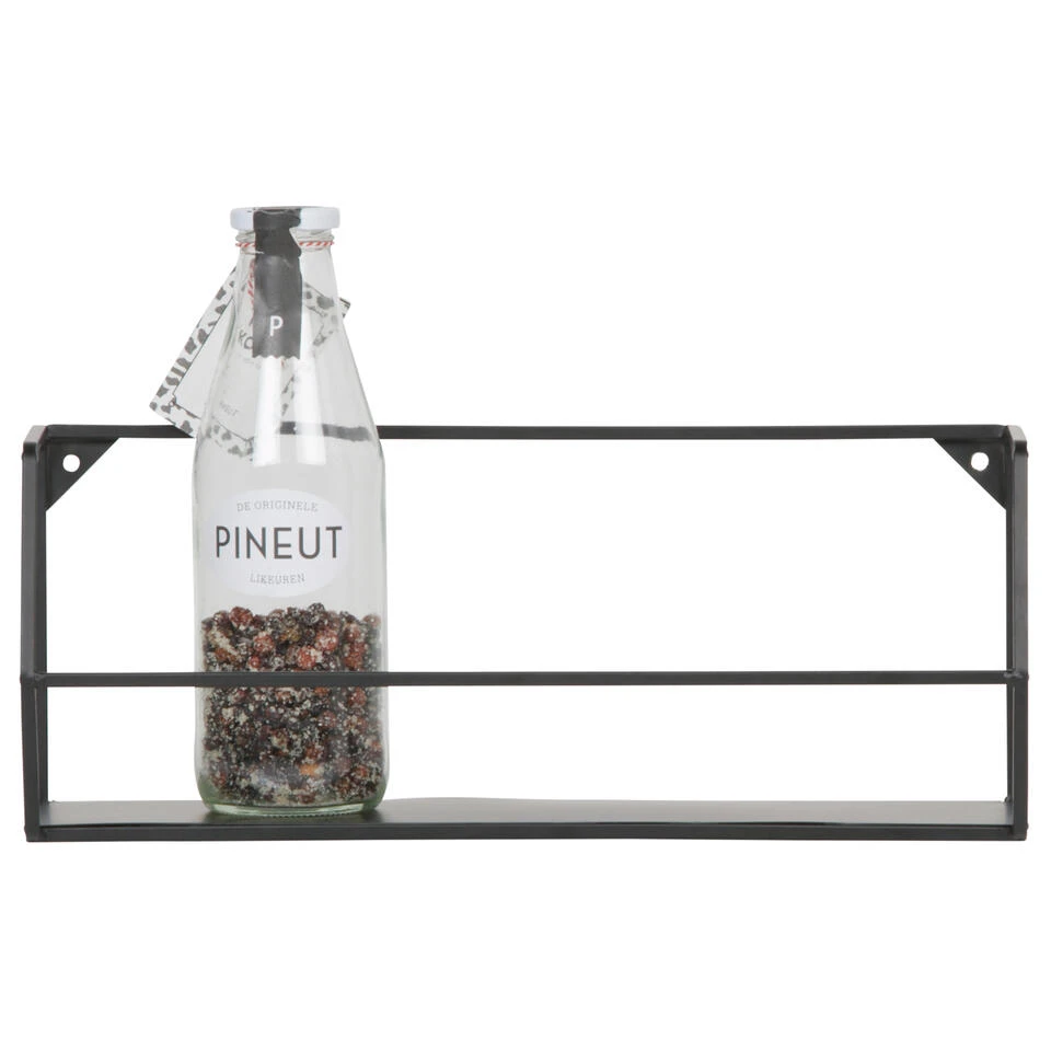 Metalen wandplank Zeta is van het Nederlandse merk WOOOD. Het ijzeren frame is afgewerkt met een zwarte poedercoating. De wandplank heeft een maximaal draaggewicht van 5 kg.